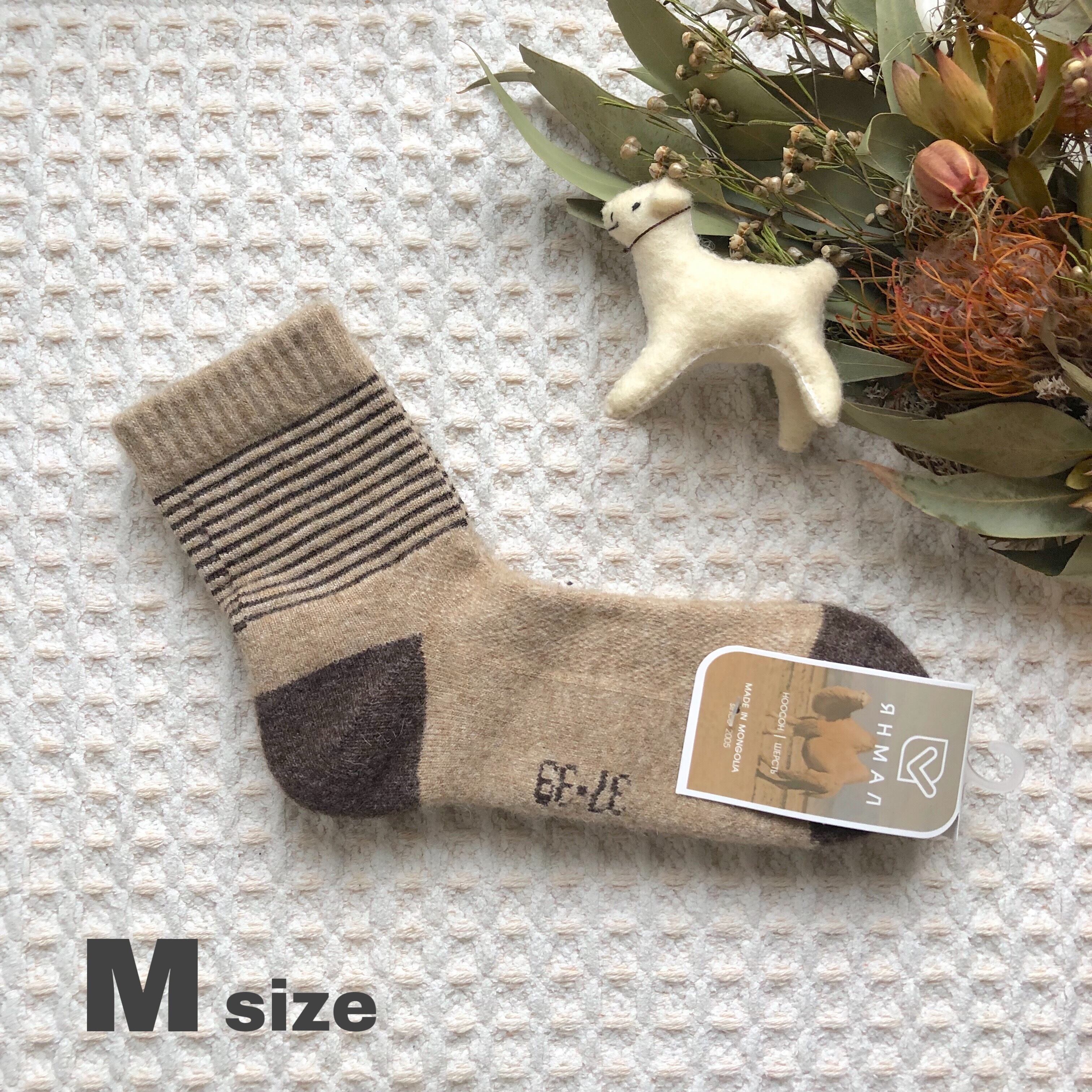 ボーダー(M)ブラウン★モンゴル靴下★温活